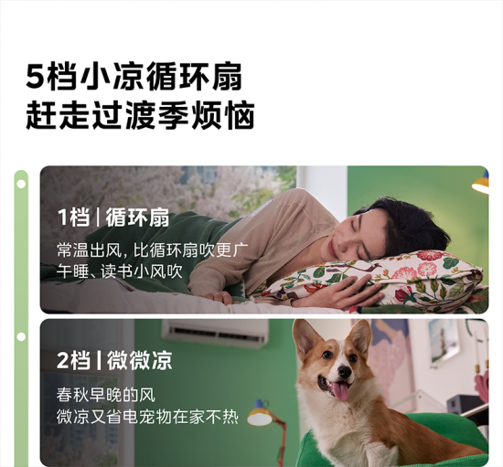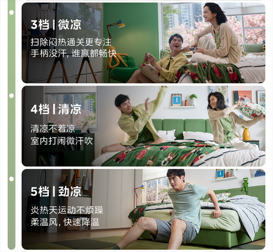 这种体验比风扇带动室内空气流动的范围更广、比制冷模式更省电,有效驱散沉闷,让居家呼吸更通透,带来了除冷热之外的“第三种选择”。